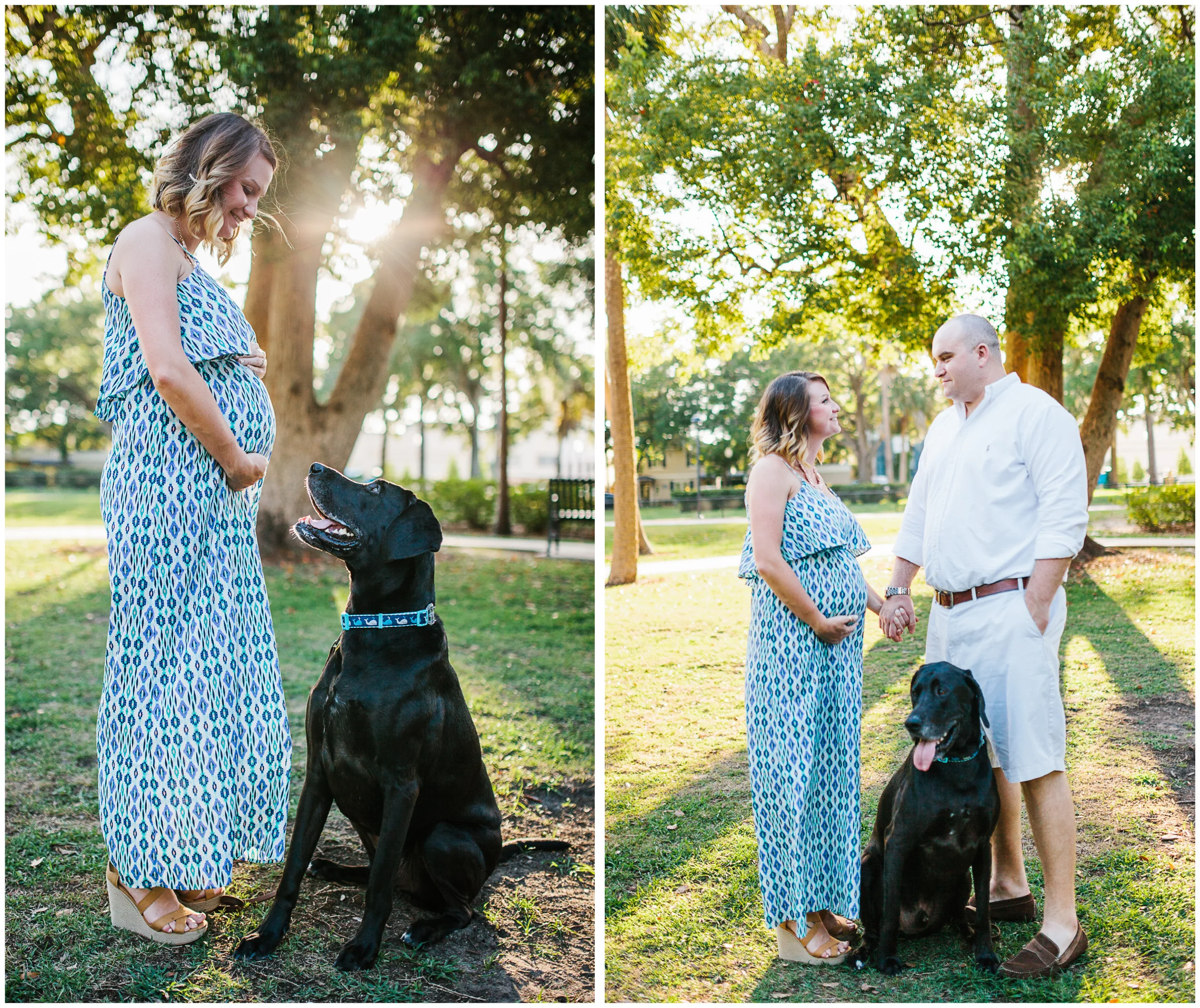 Megan and I met earlier this year through a creative women's group that we're both a part of called Pursuit 31. We instantly clicked! When we first met, I got to hear all about their upcoming addition and all the life changes that she and her husband, Sonny, are preparing for. I was so honored when Megan asked me to shoot her maternity session! Megan, Sonny, and Duke (their lovable and super well-behaved dog!) met me on Park Avenue in Winter Park for a sunset maternity session. Also, Sonny's parents helped us get great shots of Duke with their incredible dog-whispering skills... and lots of doggie treats! I'm so excited for Megan and Sonny as they get to meet their little one later this year.